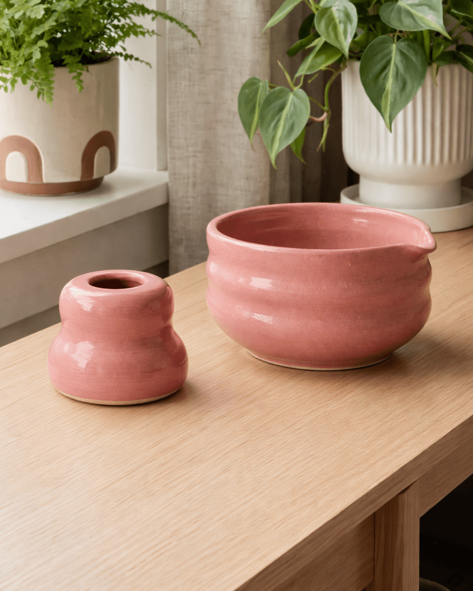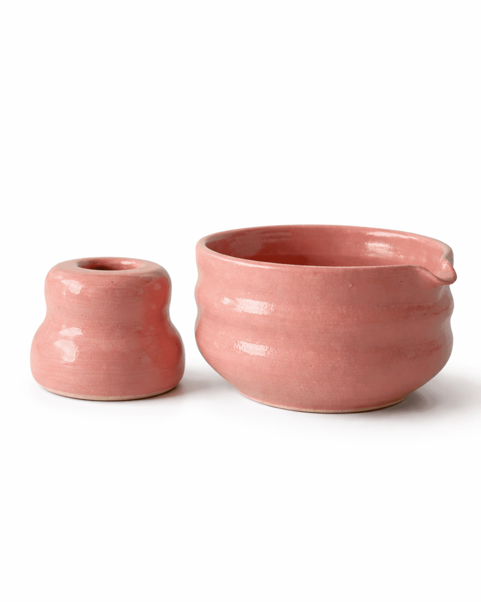 Cerâmica artesanal, desenvolvida peça a peça, com design pensado para facilitar o preparo e evitar respingos.