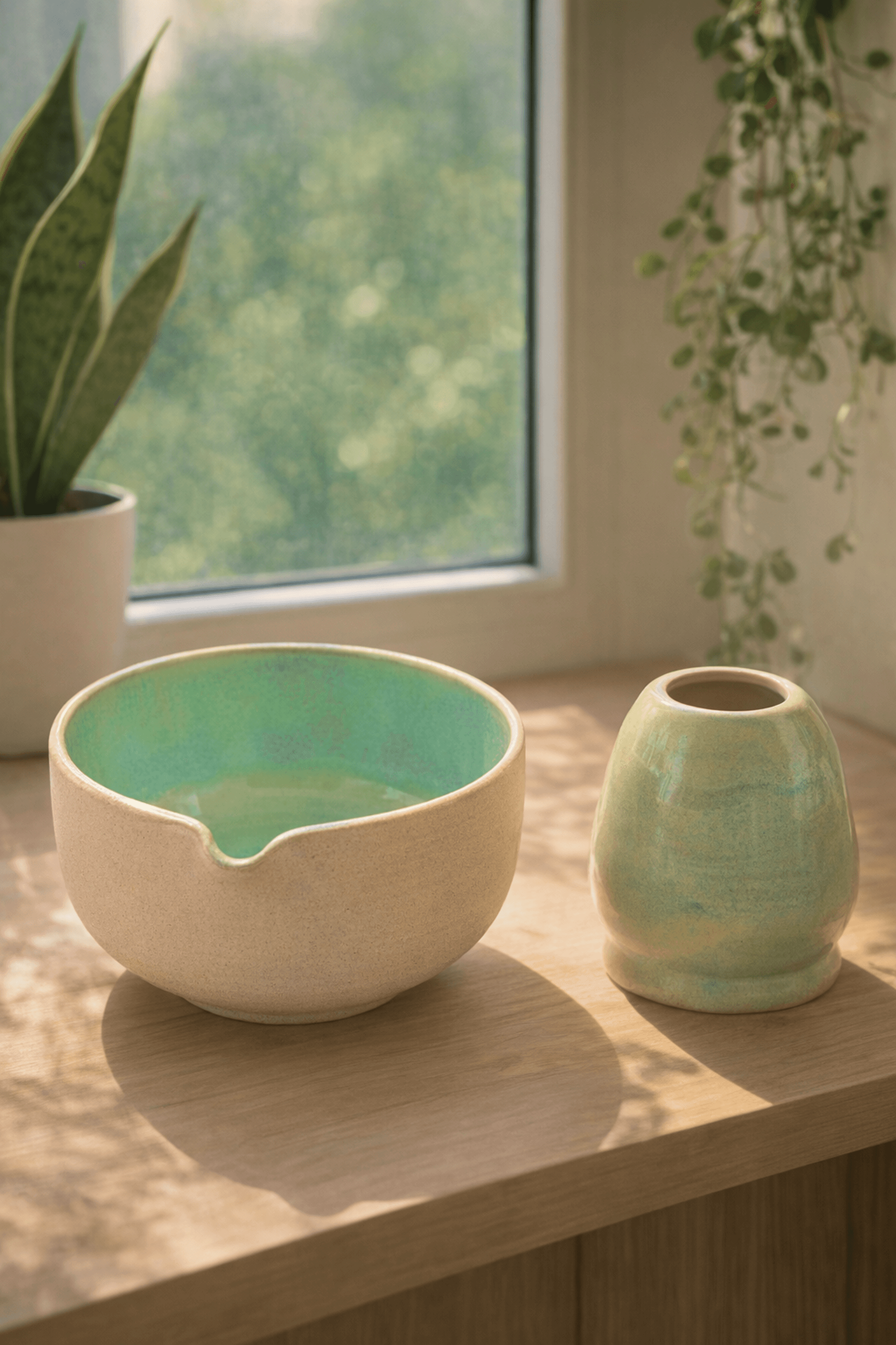 Item feito à mão em cerâmica para ajudar a manter o formato e prolongar a durabilidade das cerdas do seu batedor de bambu (chasen).